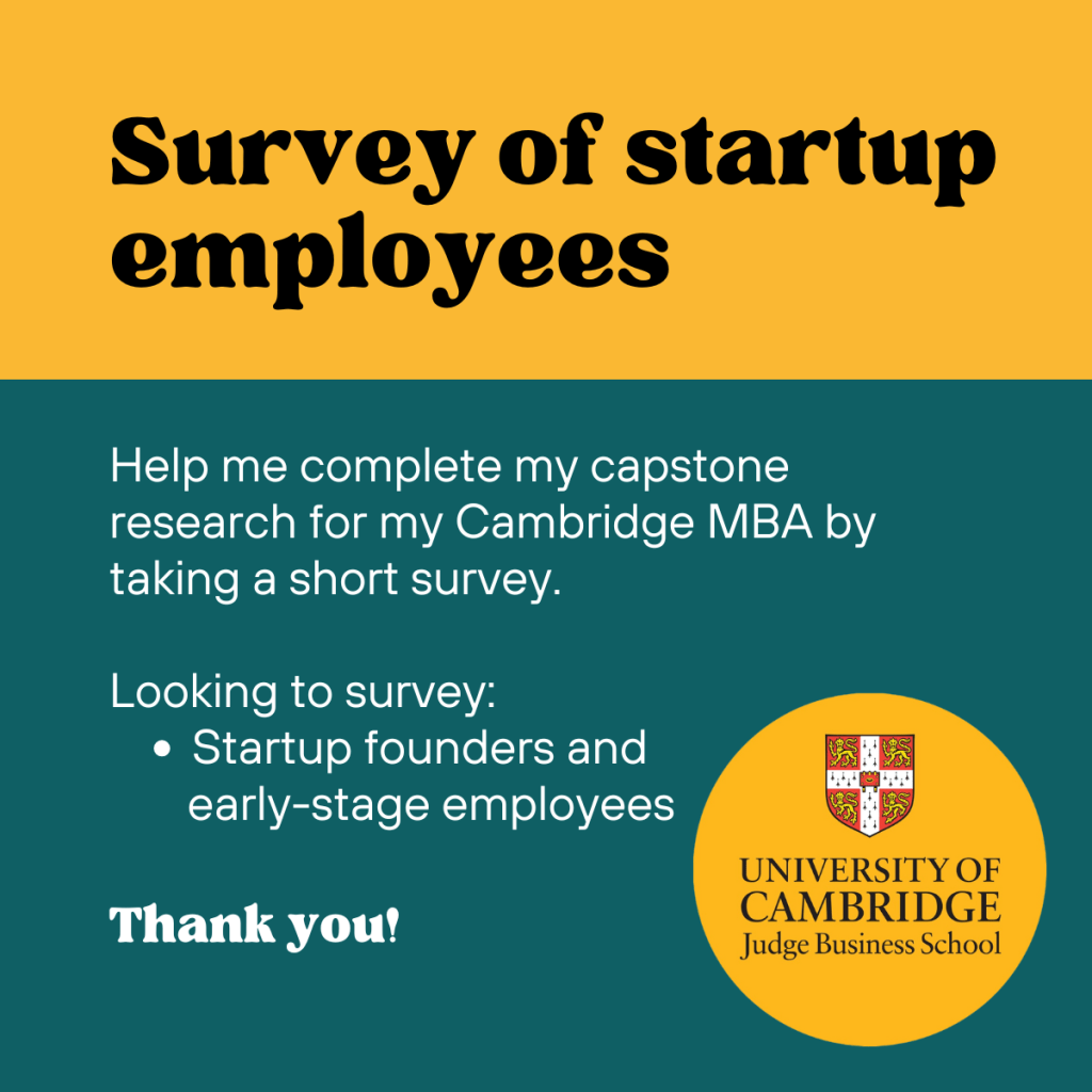 If you have worked at a startup recently, please take 5 minutes to complete THIS SURVEY.